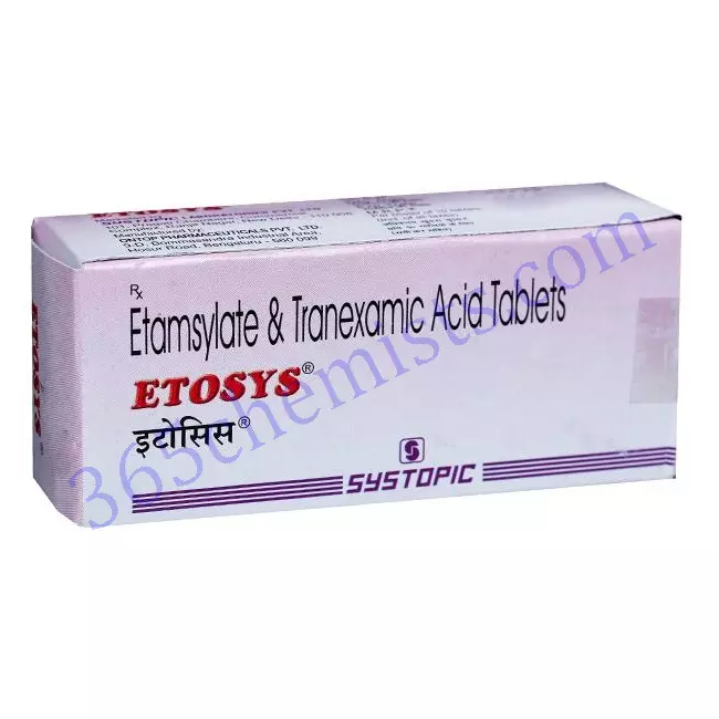 A valuable therapeutic option for the management of bleeding disorders is the Etosys Tablet, which contains Tranexamic Acid 250mg/Ethamsylate 250mg. Because of its dual-action mechanism, it is able to effectively control bleeding by promoting hemostasis and stabilising blood clots. This results in effective control of bleeding. Patients suffering from conditions such as menorrhagia, postoperative bleeding, dental procedures, or epistaxis may notice a significant improvement in their quality of life after using Etosys Tablet in accordance with the manufacturer’s instructions. In spite of this, it is absolutely necessary to take the medication exactly as directed, taking all of the appropriate precautions, and contacting a doctor if any adverse effects manifest themselves. When it comes to the correct diagnosis, treatment, and monitoring of bleeding disorders, it is absolutely necessary to seek the advice of a healthcare professional.