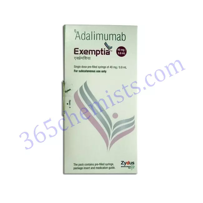 Exemptia 40mg/0.8ml Injection is a medicine used to treat a variety of conditions such as ankylosing spondylitis, rheumatoid arthritis, psoriasis, ulcerative colitis, and Crohn’s disease. It provides relief from swelling, pain, and redness associated with various disorders and improves physical function.