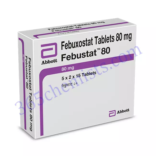 Febustat 80 MG Tablet is a medicine used to treat Gout (a condition that causes pain, swelling, and stiffness in the joints due to the accumulation of uric acid crystals). It works by reducing the production of uric acid in the body, thus preventing the accumulation of urate crystals in your joints.