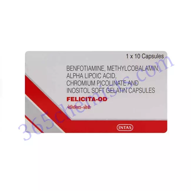 Felicita-OD Capsule is used as adjuvant in cardio vascular disorders, diabetic retinopathy and diabetic nephropathy. Chromium in felicita od reduces blood glucose levels and HbA1c in patients with type 2 diabetes.