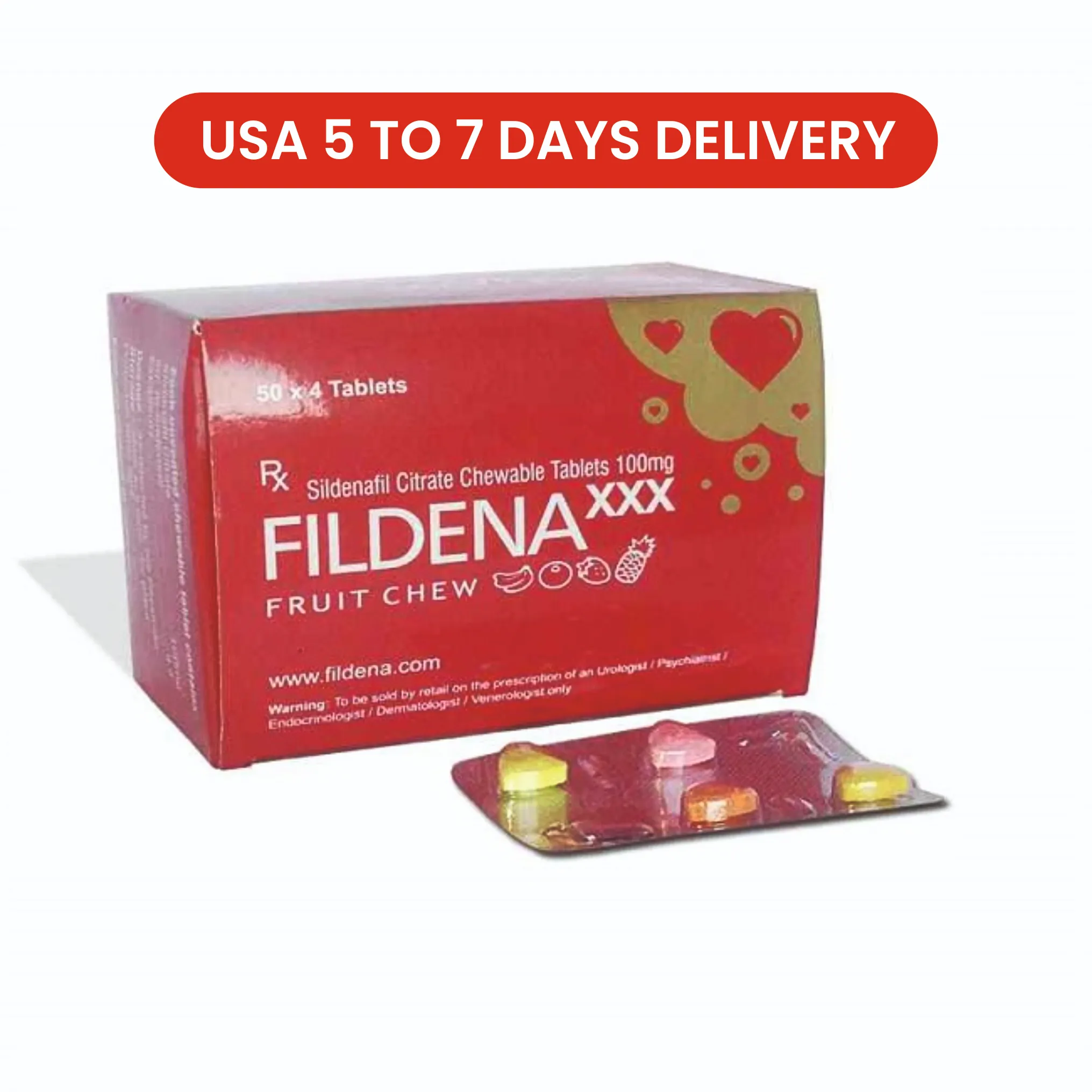 Fildena XXX (Fildena Fruit Chew 100mg) online at the lowest price from a most trusted generic store to cure Erectile Dysfunction. Get all details regarding Chewable Sildenafil like the Composition, reviews, how to work, how to take Fildena, how long does It last, side effect, dosage, Substitutes, and Precautions. Manufactured by Fortune Healthcare Pvt Ltd.