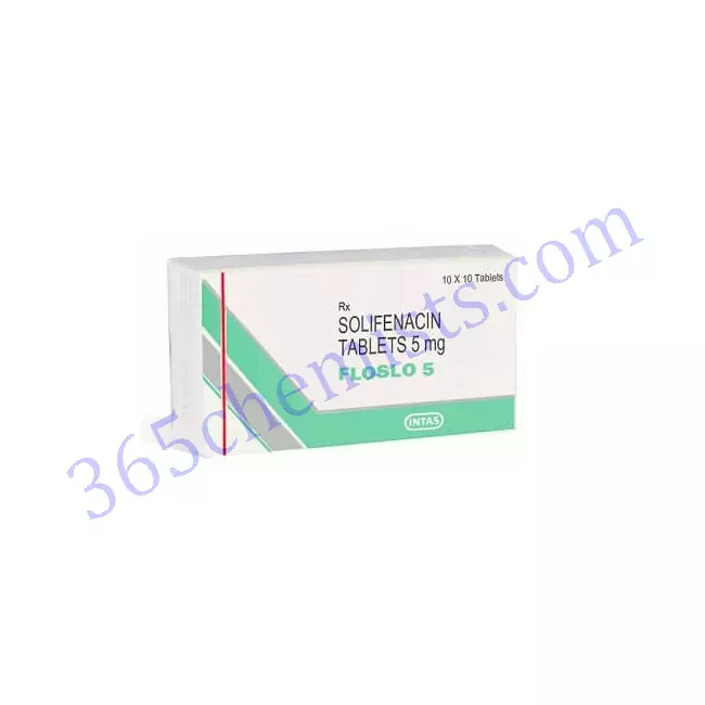 FLOSLO 5MG contains Solifenacin which belongs to the group of medicines called anticholinergics. It is used to treat the symptoms of a urological condition called as overactive bladder. Overactive bladder, also called as OAB is a type of bladder problem which causes a frequent and sudden urge to urinate that may be difficult to control.