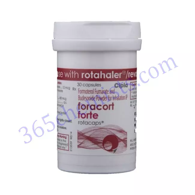Individuals who suffer from moderate to severe persistent asthma may benefit from the dual-action inhalation therapy that is provided by Foracort Forte Rotacaps, which contain both budesonide and formoterol. Foracort Forte Rotacaps are able to effectively control asthma symptoms, lower the risk of exacerbations, and improve lung function as a result of their combination of bronchodilatory and anti-inflammatory effects. The therapeutic indications, mechanism of action, dosage recommendations, potential side effects, and precautions that have been discussed in this article provide valuable information for individuals who are thinking about using Foracort Forte Rotacaps or who are already using them. However, the best course of action is to seek the personalised advice and direction of a qualified healthcare professional at all times.