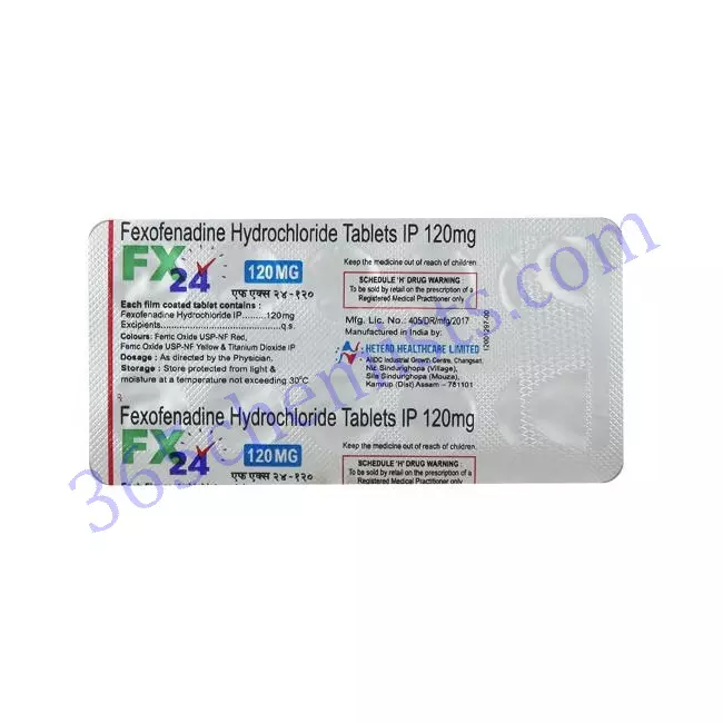 Please note that this information is provided for educational purposes only and should not replace the advice of a healthcare professional. Always consult with a qualified healthcare provider for personalized medical advice and treatment options based on your specific needs and condition.FX 24 120mg Tablet, containing Fexofenadine as its active ingredient, is a reliable medication for the treatment of allergic rhinitis and chronic hives. By blocking the effects of histamine, it effectively alleviates symptoms such as sneezing, itching, and watery eyes. It is available in a convenient tablet form and is suitable for adults and children aged 6 years and older. It is important to follow the recommended dosage and usage instructions provided by your healthcare professional. If you have any concerns or questions about the medication, consult your healthcare provider for guidance. Remember to store the medication properly and dispose of it responsibly. With proper use, FX 24 120mg Tablet can help you manage your allergy symptoms and improve your quality of life.