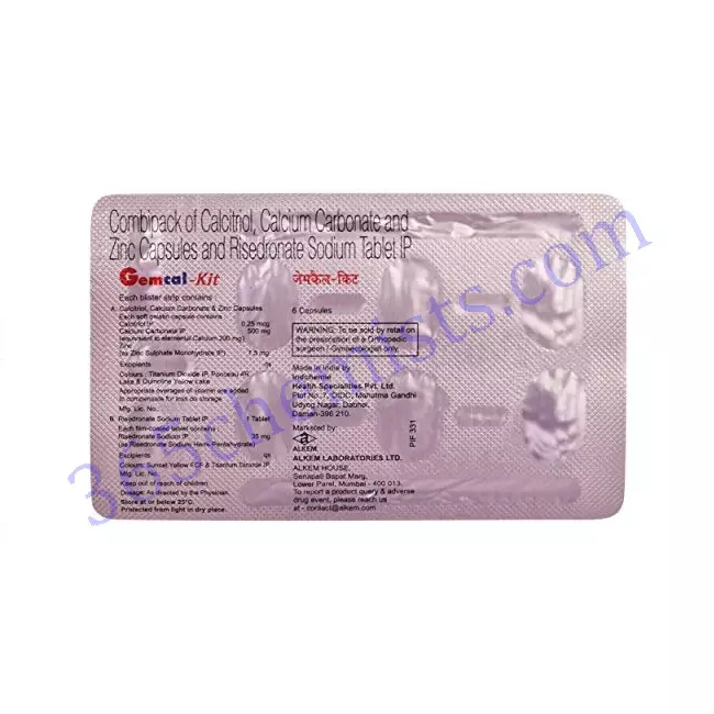 Gemcal -Kit is a combination medicine used in the treatment of osteoporosis. It prevents bone loss and makes the bones stronger. This way it helps in preventing bone fractures.