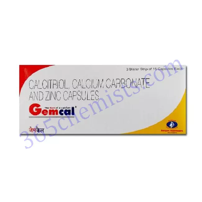Gemcal Soft Gelatin Capsule is an excellent dietary and nutritional supplement and is taken for calcium deficiency state which may occur in postmenopausal osteoporosis, rickets and osteomalacia (softening of the bones). Gemcal capsule is a rich source of calcium while Calcitriol is a synthetic vitamin D analog which is active and helps in softening and providing strength to the bones.