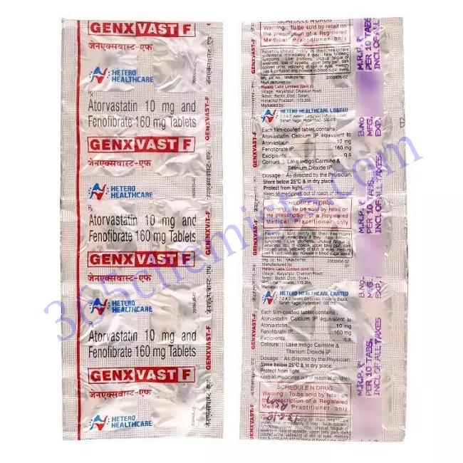 Genxvast F Tablet (Atorvastatin 10mg/Fenofibrate 160mg)