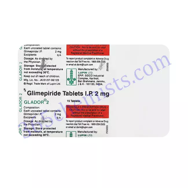 Glador 2 Tablet 10 (Glimepiride 2mg) $25.00 – $63.00Price range: $25.00 through $63.00