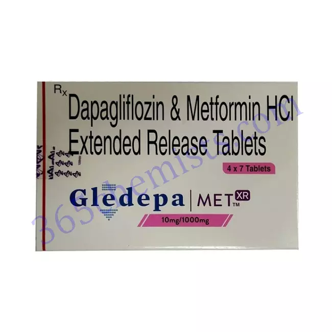 For the treatment of type 2 diabetes mellitus, doctors recommend Gledepa Met XR 1000mg Tablets. By enhancing insulin sensitivity and decreasing glucose reabsorption in the kidneys, it lowers blood sugar levels and increases urine glucose excretion. Dapagliflozin and Metformin work in tandem to produce complimentary benefits that improve glycemic control and lower the risk of diabetes-related complications.
