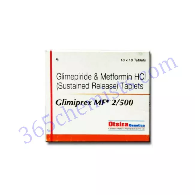 Combination medicine Glimiprex MF 2/500mg Tablet is used to treat type 2 diabetes. To properly manage blood sugar levels, it combines glimepiride and metformin. Although it is generally well tolerated, some people may experience gastrointestinal issues, hypoglycemia, weight gain, or allergic responses. It’s critical to adhere to your doctor’s recommendations, be aware of any possible side effects, and communicate any worries to your healthcare practitioner. Glimiprex MF 2/500mg Tablet can help people with type 2 diabetes properly control their illness and enhance their overall quality of life with proper use and monitoring.