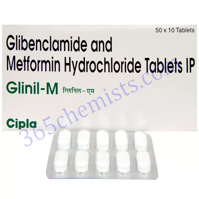 A combination drug called Glinil-M 5mg/500mg Tablet is used to treat type 2 diabetes mellitus. Glibenclamide and metformin, two of its two active components, collaborate to lower blood sugar levels and enhance glycemic control. Due to its efficiency and practicality in managing diabetes, Glinil-M 5mg/500mg Tablet is frequently prescribed by medical practitioners.