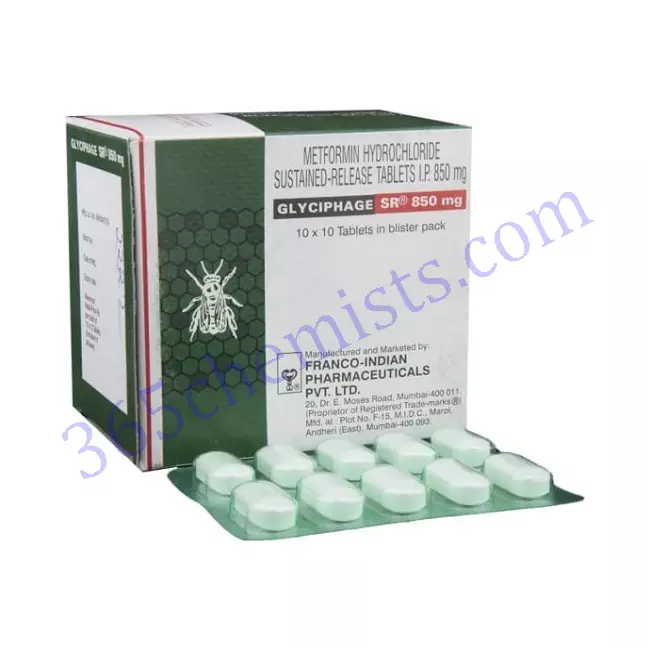 The sustained-release design of Glyciphage SR 850mg Tablet offers better tolerability and longer glucose control for many patients.