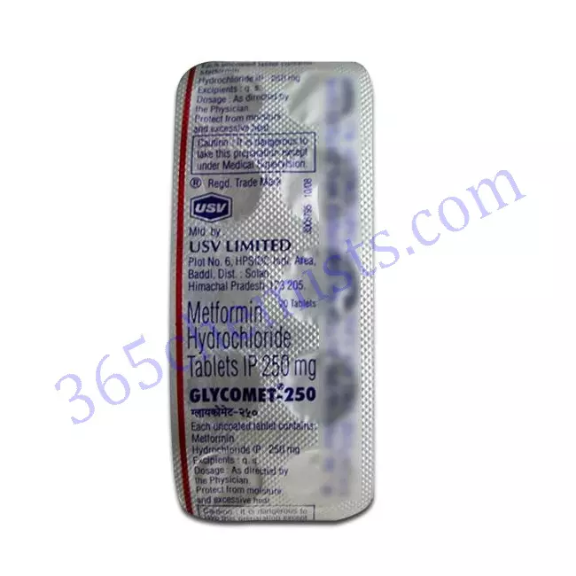 Home Diabetes Glycomet 250 Tablet (Metformin 250mg)