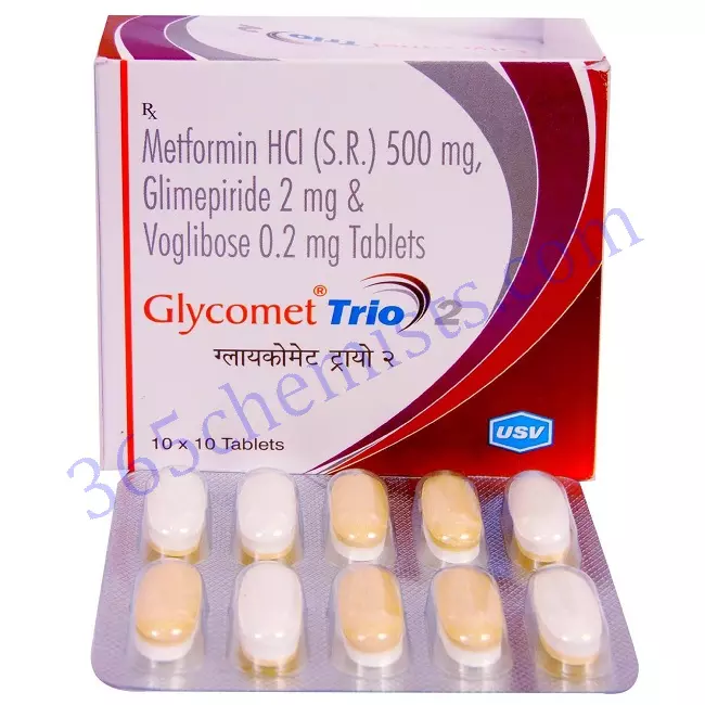 Home Diabetes Glycomet Trio 2 Tablet (Glimepiride / Metformin /Voglibose)