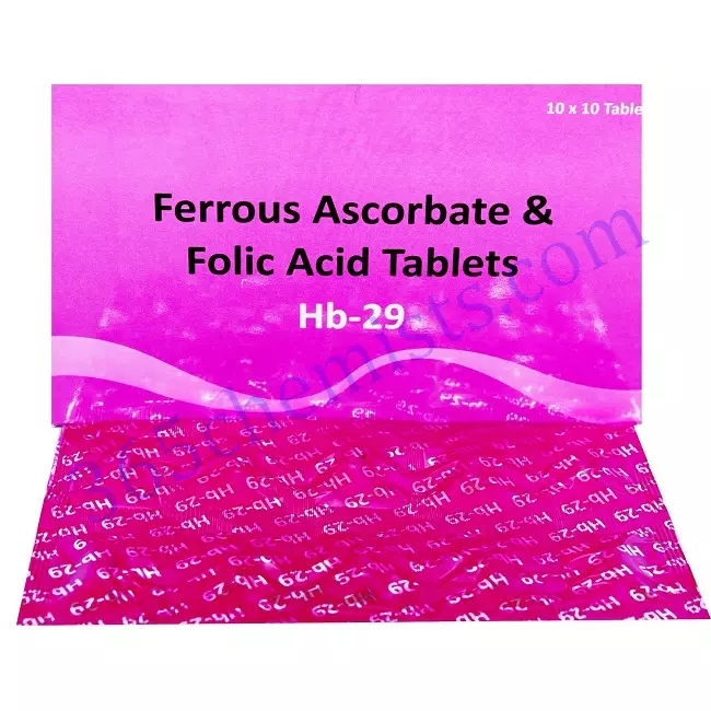A medication that is commonly used for the treatment of iron deficiency anaemia is known as the HB 29 Tablet. This medication contains Ferrous Ascorbate and Folic Acid. The HB 29 Tablet helps alleviate symptoms and improve overall well-being by replenishing iron stores and supporting healthy red blood cell production. It is essential to take the medication exactly as directed, to adhere to the recommendations of your healthcare provider, and to go to all of your follow-up appointments as scheduled. Individuals who suffer from iron deficiency anaemia have access to an effective treatment option in the form of the HB 29 Tablet, which, when used appropriately and under the supervision of a medical professional, can help patients restore their iron levels and improve their overall quality of life.