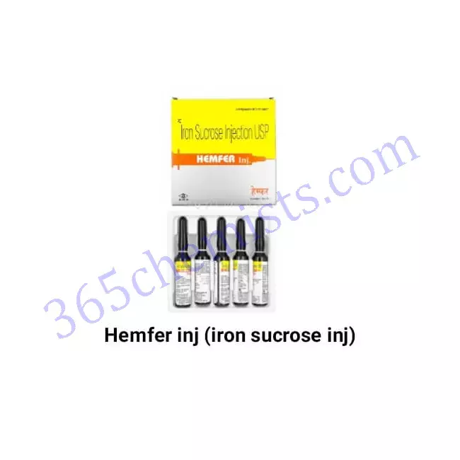 Hemfer 100mg Injection is a medication that is frequently used for the treatment of iron deficiency anaemia. This medication contains iron sucrose. Hemfer 100mg Injection helps alleviate symptoms and improve overall well-being by replenishing iron stores and assisting in the production of healthy red blood cells. It is essential to take the medication exactly as directed, to adhere to the recommendations of your healthcare provider, and to go to all of your follow-up appointments as scheduled. Hemfer 100mg Injection can be an effective treatment option for individuals who suffer from iron deficiency anaemia if it is used correctly and under the supervision of a medical professional. This will help to restore the individual’s iron levels and improve their overall quality of life.