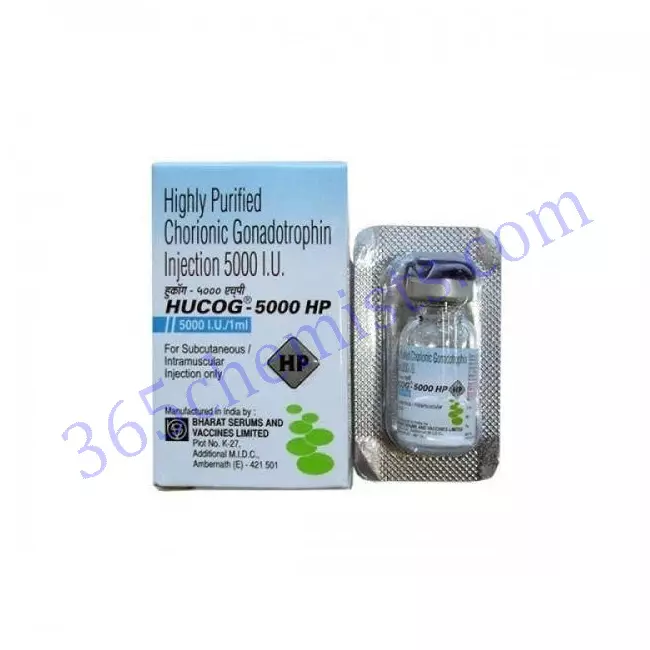 Hucog-5000 HP Injection 1’s contains ‘human chorionic gonadotrophin’ used in the treatment of female infertility and male hypogonadism. It stimulates the production of sex hormones such as testosterone in men and progesterone in women. It can stimulate ovulation (egg production) in women and improve sperm production in men.