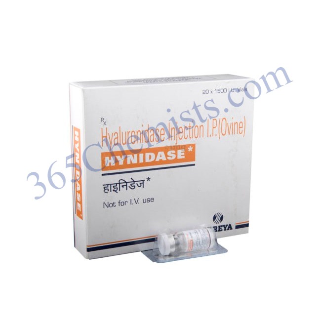 Hynidase Injection belongs to a class of an enzyme primarily used together with fluids injected into the body to treat dehydration. It is also used to aid in the absorption of injections that are given into a muscle or under the skin. Hynidase Injection is also used to enable excess fluids and blood in the tissues to be more easily re-absorbed. Besides this, it is also used to help contrast dyes in your body show more clearly on certain types of x-rays or scans.
