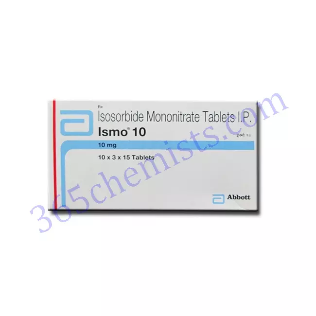 Angina pectoris can be treated with a medication called Ismo 10mg Tablet, which contains isosorbide mononitrate. This medication works by increasing the amount of blood that flows to the heart. It is essential to ensure that you adhere to the dosage and directions that have been prescribed to you by your healthcare provider. In order to ensure the safe and effective use of the Ismo 10mg Tablet, it is important that you discuss any medical conditions, allergies, or medications that you are currently taking with your doctor. The best possible management of your condition requires both consistent monitoring and follow-up appointments at regular intervals. Talk to your healthcare provider about getting individualised advice if you have any questions or concerns about your health.