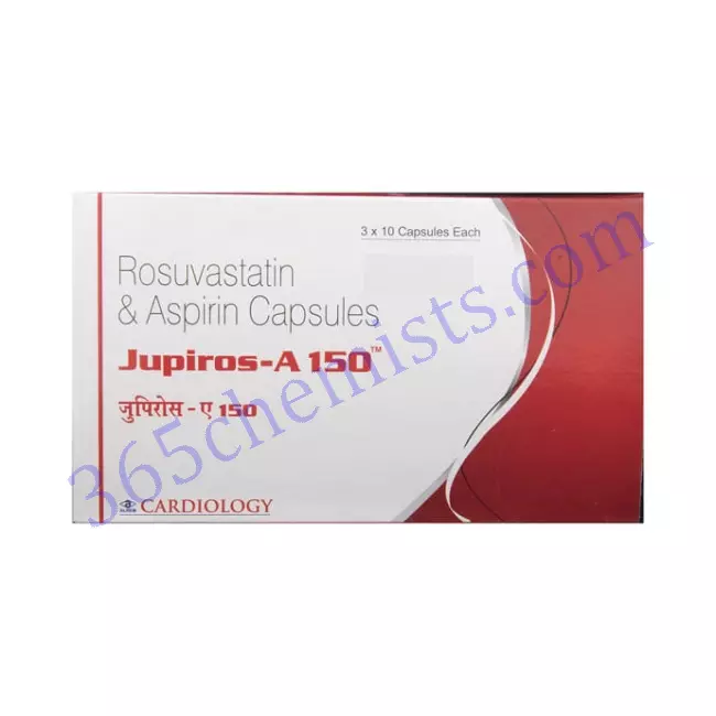 The benefits of rosuvastatin and aspirin in the management of high cholesterol levels and the reduction of the risk of cardiovascular events are combined in the medication known as Jupiros A Capsule. The ability of Jupiros A Capsule to control cholesterol levels and inhibit the formation of blood clots makes it an important component in the process of preserving cardiovascular health. However, it is essential to take the medication exactly as directed, to be aware of the possibility of experiencing adverse effects, and to discuss any concerns or symptoms that are not typical with your healthcare provider. It is possible for Jupiros A Capsule to make a significant contribution to the prevention of cardiovascular events and to the promotion of overall well-being if it is used correctly and regularly monitored. It is critical that you have a conversation with your healthcare provider in order to establish whether or not Jupiros A Capsule is the appropriate medication for you based on your specific medical condition and the requirements of your treatment plan.