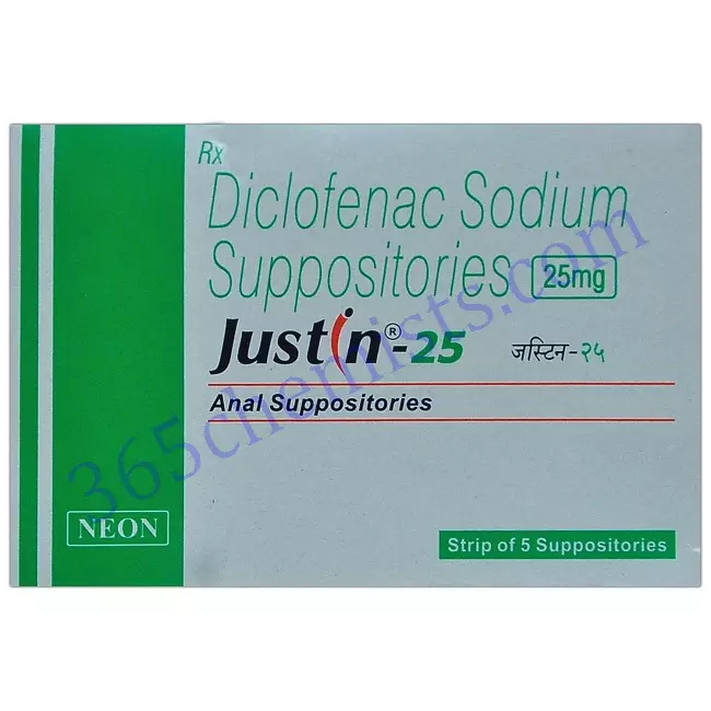 3. Interactions with Medications The Justin 25mg Suppository may have an interaction with a number of medications, including blood thinners, diuretics, and other nonsteroidal anti-inflammatory drugs (NSAIDs). It is imperative that the patient disclose to the healthcare professional all of the medications, supplements, or herbal products that they are currently consuming in order to prevent any potentially harmful interactions.