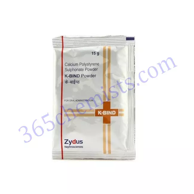 A condition that is characterised by elevated levels of potassium in the blood can be treated with a medication called K-Bind Powder (Calcium Polystyrene Sulphonate 15gm). This medication is used for the management of hyperkalemia. It accomplishes this by affixing itself to excess potassium in the digestive tract, which, in turn, contributes to a decrease in potassium levels throughout the body. It is imperative to adhere to the recommended dosage and administration instructions, keep a close eye out for any potential adverse effects, and communicate with the healthcare provider about any preexisting conditions or medications you are currently taking. K-Bind Powder, when utilised appropriately and with all necessary precautions, has the potential to assist in restoring potassium balance and preventing complications that are associated with hyperkalemia.