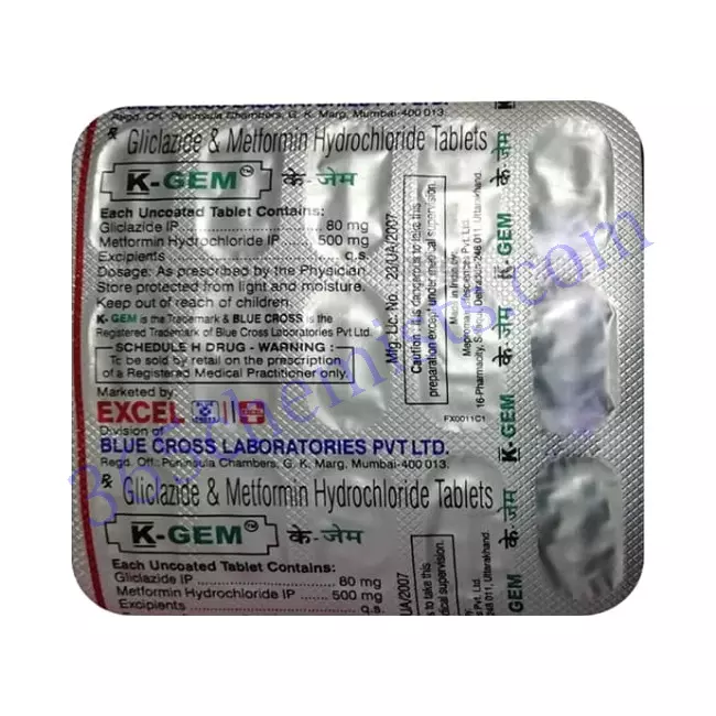 K-Gem Tablet is a combination drug that combines the active components Gliclazide and Metformin. This medication is taken by mouth. It is a medication that is frequently recommended for the management of diabetes mellitus type 2. This complete overview will present crucial information about K-Gem Tablet, including its mechanism of action, applications, dose recommendations, potential side effects, and important considerations for patients. Specifically, the K-Gem Tablet will be discussed.