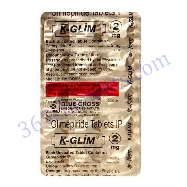Although the K-Glim 2mg Tablet is generally well accepted, it is possible that it could have adverse effects in certain people. Mild gastrointestinal discomfort, such as nausea or stomach upset, is a common side effect that many people experience. In most cases, these symptoms are only temporary and go away as the body becomes accustomed to the medicine.