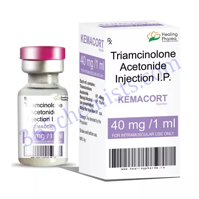 365chemists is the most trusted online pharmacy store for generic medicine. We sell high quality authenticated branded drug at a low price. You can choose Kemacort Injection (40 mg) (Triamcinolone) as your preferred treatment option. Know about its reviews, side effects, dosage, how to work, how to take, how long does It last, side effect, dosage, and Precautions.
