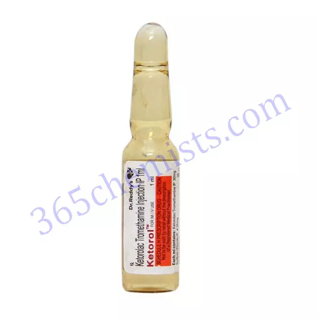 - In addition to its analgesic effects, Ketorol 30mg Injection demonstrates anti-inflammatory properties. These properties allow for a reduction in inflammation. It helps decrease swelling, redness, and discomfort associated with various inflammatory conditions by lowering levels of inflammation, which can be caused by a variety of health conditions.
