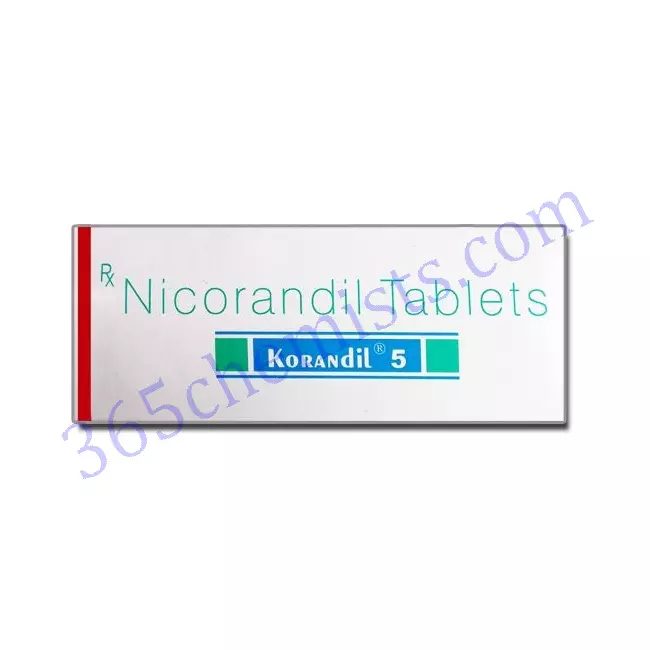 Nicorandil is the active component of the medication that is available under the brand name Korandil 5mg Tablet. It is classified as a member of the group of medications known as potassium channel openers. Tablets of Korandil 5 mg are typically prescribed for the treatment of angina pectoris, which is a condition in which a person experiences discomfort or pain in the chest as a result of inadequate blood flow to the heart muscle. The symptoms of angina can be alleviated and the frequency and severity of angina attacks can be reduced thanks to the use of Korandil 5mg Tablet, which works by relaxing the blood vessels and increasing blood flow.