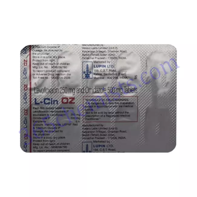 A combination therapy known as L-Cin OZ Tablet, which contains the antibiotics levofloxacin and ornidazole, is utilised in the treatment of bacterial infections as well as certain protozoal infections. Due to the fact that it is effective against both bacteria and protozoa, it is an excellent option for medical professionals to consider when treating mixed infections or infections in which the presence of both bacterial and protozoal components is suspected. However, it is essential to use this medication under the direction of a trained medical professional, to strictly adhere to the dosage and duration that have been prescribed, and to be aware of any potential adverse effects. Patients can improve their chances of making a full recovery and reduce their risk of experiencing complications by acting in this manner.