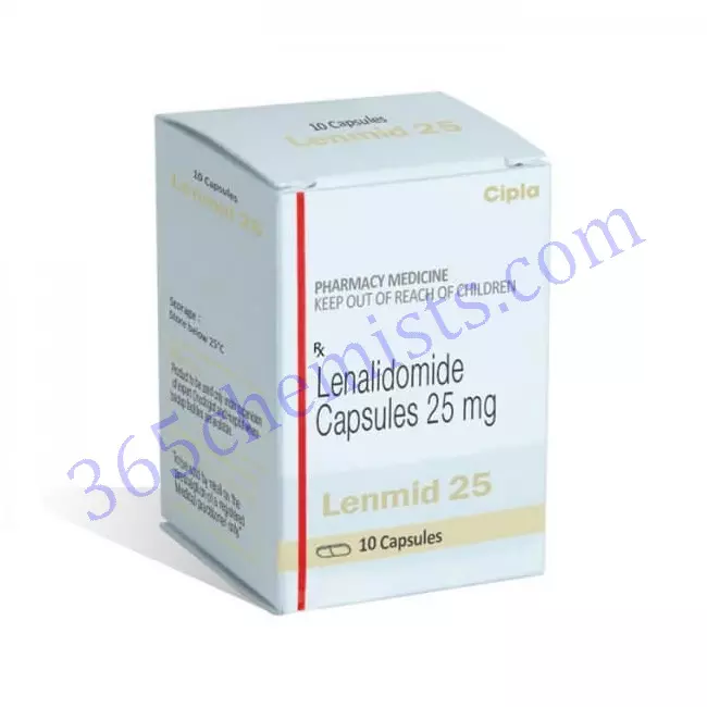 25 mg. Lenmid There are numerous therapeutic mechanisms used by capsules. It increases the activity of immune cells, prevents the development of new blood vessels that feed tumours, and encourages cancer cells to undergo programmed cell death (apoptosis). These actions aid in reducing tumour growth and enhancing the course of the disease.