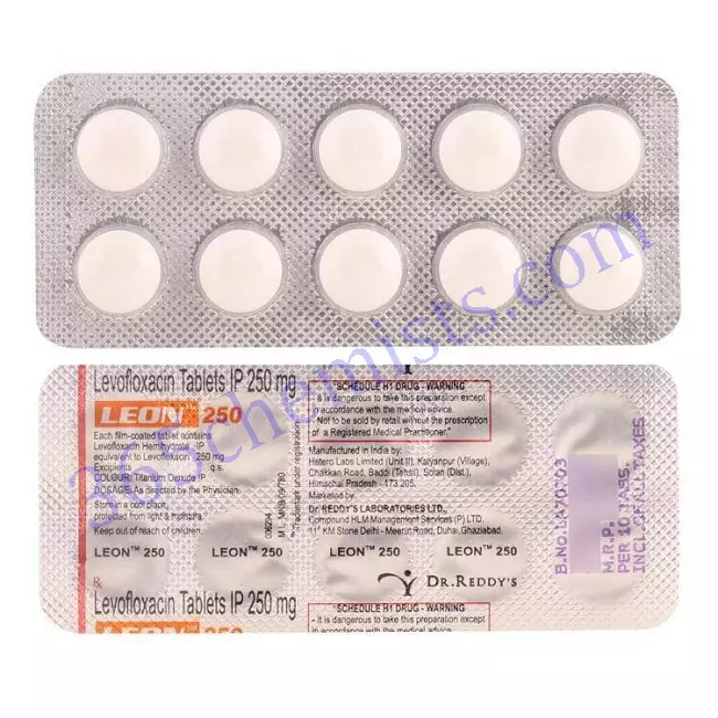 Levofloxacin, also known as Leon 250 mg Tablet, is a medication that is frequently prescribed for the treatment of a wide variety of bacterial infections. Because it is effective across a wide range of symptoms and conditions, the Leon 250mg Tablet is frequently utilised by medical professionals. However, in order to achieve the best possible results from treatment, it is essential to adhere to the healthcare provider’s instructions regarding dosage, precautions, and recommendations. It is always best to consult a healthcare professional for personalised guidance if you have any concerns or questions regarding Leon 250mg Tablet. If you have any of these concerns or questions, please do so.