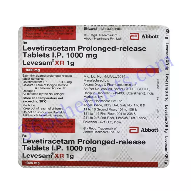 In the treatment and management of epilepsy, the medication known as Levesam 1gm Tablet has proven to be highly effective. People who have epilepsy can improve their ability to control their seizures and their quality of life by carefully adhering to their doctor’s dosage instructions, being aware of the potential adverse effects of their medication, and taking all necessary precautions. It is essential to maintain regular communication with the healthcare professional, adhere to the treatment plan, and promptly report any concerns or changes in symptoms in order to achieve optimal epilepsy management when using Levesam 1gm Tablet.In a nutshell, Levetiracetam, which is the active ingredient in Levesam 1gm Tablet, is a medication that is prescribed to patients suffering from epilepsy. Both adults and children can benefit from a reduction in the frequency and severity of seizures when they take this supplement. It is imperative that the dosing and administration instructions be followed precisely as detailed in the medical professional’s prescription. Although the Levesam 1gm Tablet is generally well tolerated, some people may experience mild side effects such as drowsiness, dizziness, and headache while taking the medication. Even though serious adverse effects are uncommon, they should be reported straight away to a medical professional. It is important to take precautions, such as informing a medical professional about any preexisting medical conditions and medications, avoiding activities that require mental alertness, and refraining from drinking alcohol. Individuals who have epilepsy can effectively manage their condition with Levesam 1gm Tablet and improve their overall quality of life if they adhere to the treatment plan and maintain open communication with the healthcare professional.