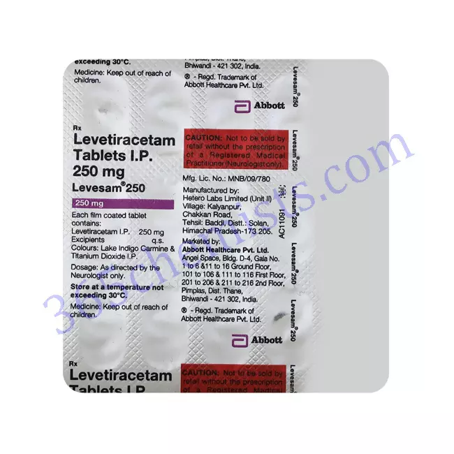 Levetiracetam is the active ingredient in the medicine known as Levesam 250mg Tablet, which is a medication for the treatment of epilepsy. Individuals who have epilepsy can effectively manage their condition and significantly cut down on the frequency and severity of seizures if they follow the dosage and administration instructions that have been prescribed to them. It is possible to experience adverse effects, but in most cases, they are not severe and can be tolerated. It is imperative that any concerns or ongoing adverse effects be communicated to a healthcare professional. Individuals are able to maximise the benefits of Levesam 250mg Tablet and improve their overall quality of life when they collaborate closely with the healthcare team.