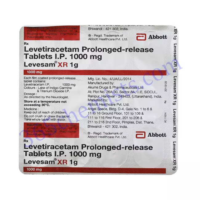 Drug Interactions: The Levesam XR 1gm Tablet may interact with other medications, including hormonal contraceptives, certain antacids, and certain seizure medications. It is important to keep your healthcare provider informed about all of the medications you are currently taking so that you can be treated safely and effectively.