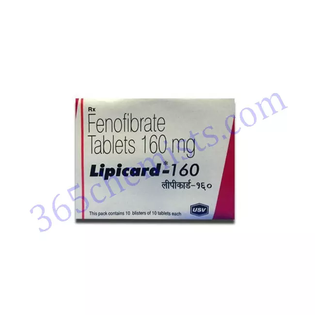 Lipicard 160mg Tablet, also known as Fenofibrate 160mg, is a medication that is used for the management of lipid disorders, such as elevated levels of cholesterol and triglycerides. The Lipicard 160mg Tablet helps improve lipid profiles and reduces the risk of cardiovascular events by lowering the amount of triglycerides that are produced and raising the amount of HDL cholesterol that is present in the body. Nevertheless, it is essential to take the Lipicard 160 mg Tablet exactly as directed, to stick to the recommended dosage, and to let your healthcare provider know about any side effects that are unusual or persistent. Lipicard 160mg Tablet has the potential to make a significant contribution to the management of lipid disorders and to the promotion of overall cardiovascular health if it is used appropriately and regularly monitored. It is essential to consult with your healthcare provider to determine if Lipicard 160 mg Tablet is the appropriate medication for you based on your specific medical condition and needs. This can only be determined after a thorough discussion between you and your healthcare provider.
