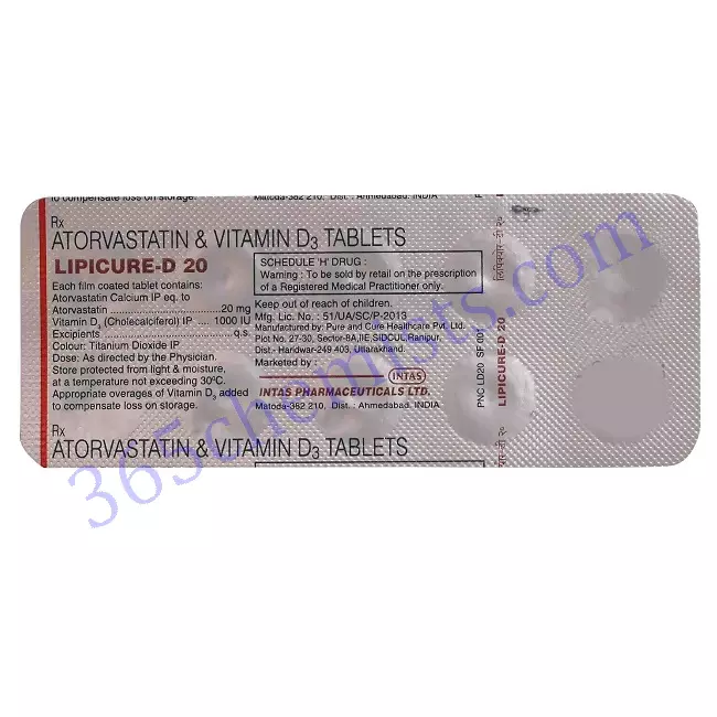 Lipicure D 20mg Tablet (Atorvastatin 20mg/Vitamin D3 1000IU): Comprehensive Support for Cholesterol and Vitamin D Levels