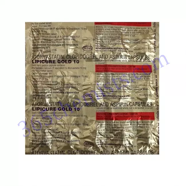 Lipicure Gold 10mg Capsule (Aspirin 75mg/Atorvastatin 10mg): Combined Therapy for Cardiovascular Health
