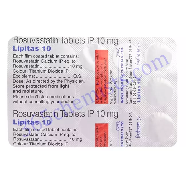 Lipitas 10mg Tablet 15’s belongs to the class of medicines known as statins, which reduces bad cholesterol (low-density lipoprotein-LDL) and glyceride level, thereby reducing the risk of heart attack and stroke in the future. There are two types of cholesterol found in our body, good cholesterol (high-density lipoprotein) and bad cholesterol (low-density lipoprotein). Good cholesterol is good for our heart and helps reduce the bad cholesterol in our body. On the other hand, excess bad cholesterol (LDL) leads to the risk of heart diseases like heart attack and stroke. High cholesterol, known as hyperlipidemia or dyslipidemia, occurs when there is an excess of the unhealthy balance of cholesterol in the blood. When there is a high cholesterol level in the blood, your arteries get narrowed and clogged, finally contributing to heart diseases like stroke and heart attack. Eating high-fat or high-cholesterol-containing food/drinks and genetic factors are the primary causes of high cholesterol.