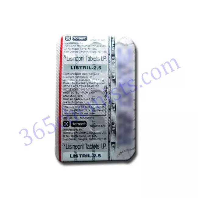 Lisinopril is the active ingredient in the medication Listril 2.5mg Tablet, which is an important medication for the management of high blood pressure as well as certain heart conditions. Listril contributes to the promotion of cardiovascular health and the reduction of the risk of complications by helping to control blood pressure, improving heart function, and providing protection for the kidneys.