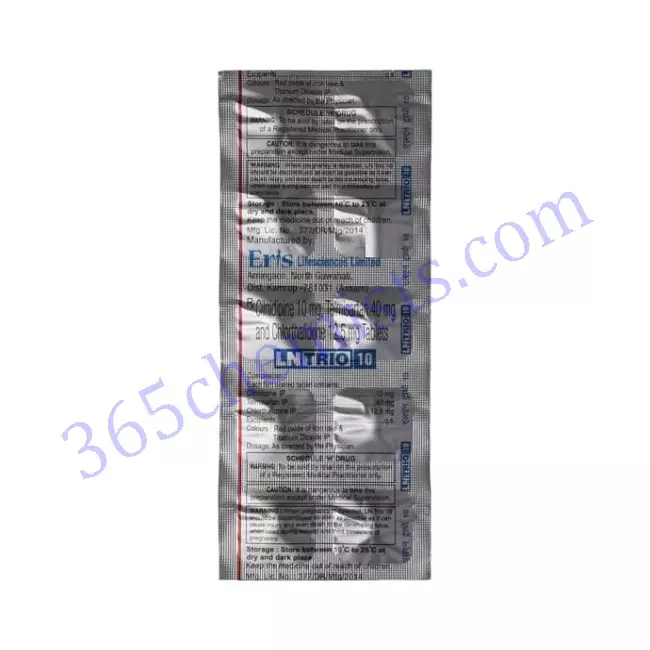 The Lntrio 10mg Tablet is an effective combination medication for the treatment and management of hypertension. This tablet contains both telmisartan and chlorthalidone. Lntrio contributes to the achievement of optimal blood pressure control and an overall improvement in cardiovascular health by lowering blood pressure, getting rid of excess fluid, and providing protection for the cardiovascular system all at the same time.