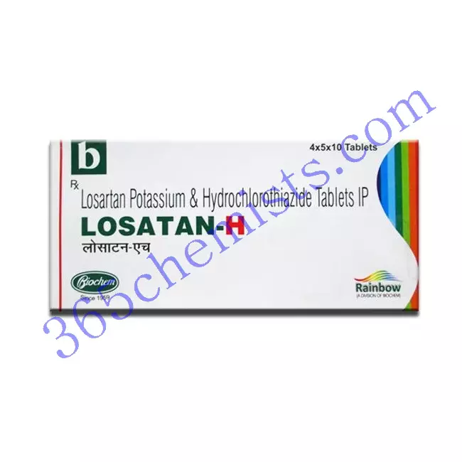 Losatan H Tablet is a combination medication that effectively controls high blood pressure by combining the actions of Losartan and Hydrochlorothiazide. This is accomplished by combining the names of the two medications: losartan and hydrochlorothiazide. Because of its two distinct modes of action, it not only provides comprehensive control of blood pressure but also lowers the risk of complications that are associated with hypertension. It is important to take Losatan H Tablet as prescribed and to follow the recommendations for a healthy lifestyle provided by your healthcare provider. These recommendations may include recommendations for regular exercise, a balanced diet, and the management of stress. Maintaining a consistent monitoring schedule and attending follow-up appointments will allow for superior blood pressure control and the achievement of superior results. Talk to your doctor about your treatment plan and the Losatan H Tablet if you have any concerns or questions about either of these. Your doctor will be able to give you individualised guidance and advice.