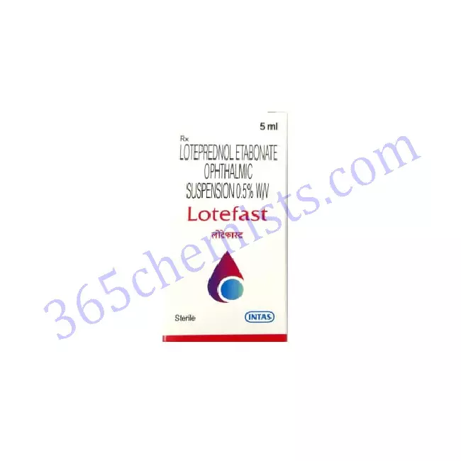 A reliable ophthalmic solution, Lotefast Eye Drop comes packaged in a bottle with a capacity of 5 millilitres and is used to treat a variety of eye ailments, including allergies and inflammation. The corticosteroid loteprednol etabonate is the active component of Lotefast Eye Drop. This corticosteroid is known for its powerful anti-inflammatory capabilities. These eyedrops offer effective relief from eye inflammation by reducing the redness, swelling, and discomfort that are typically associated with particular eye disorders.