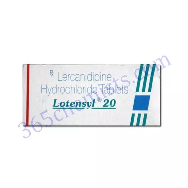 Lercanidipine is the active component in the pharmaceutical product known as Lotensyl 20mg Tablet. This product is available only with a doctor’s prescription. Calcium channel blockers, of which this medication is a member, are most commonly prescribed for the purpose of treating hypertension, which is another name for high blood pressure. Lotensyl is effective because it works by relaxing the blood vessels and causing them to widen, which ultimately results in an increase in blood flow and a decrease in blood pressure.