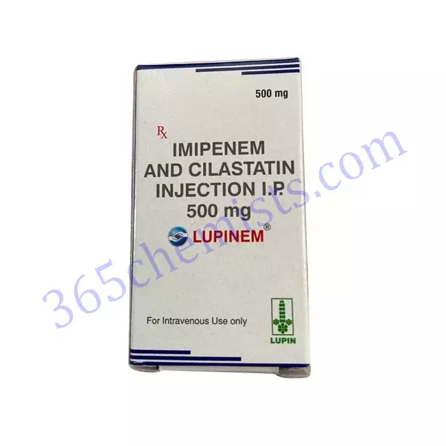 Lupinem 500mg Imipenem and cialastatine are the two active components that are combined into the medication known as injection. It is an antibiotic that is administered intravenously and is used to treat a variety of bacterial infections. Cilastatin is an inhibitor that prevents the breakdown of imipenem in the kidneys. Imipenem is an antibiotic that belongs to the carbapenem class. This combination ensures that treatment is effective while simultaneously minimising the risk of adverse effects on the kidneys.