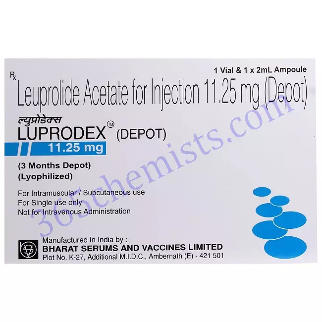 Luprodex 11.25mg Leuprolide 11.25 mg is the amount of the active component that is found in the medication injection. The treatment of certain hormone-related conditions is where it finds its primary application. These conditions can be effectively managed and the body’s hormonal balance can be restored through the use of this injection, which is both convenient and effective.