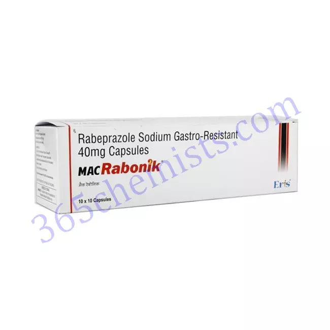 MAC RABONIK 40MG works by reducing the amount of acid in the stomach which helps in relief of acid related indigestion and heartburn.