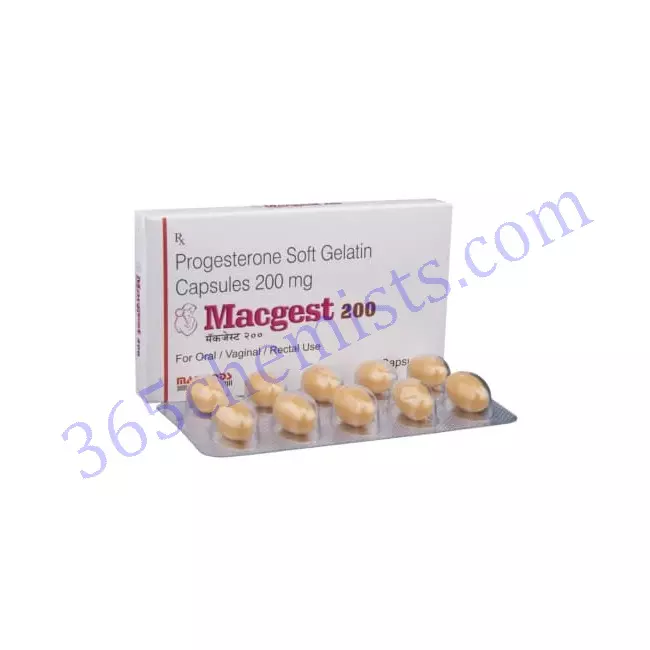 During the menstrual cycle, the ovaries are responsible for the natural production of the hormone progesterone. Macgest 200mg Progesterone is added to the body through the use of the capsule, which assists in the regulation and maintenance of the uterine lining. It assists in the preparation of the uterus for the implantation of a fertilised egg and contributes to the maintenance of a healthy pregnancy by preventing the shedding of the uterine lining. In addition, it supports the preparation of the uterus for delivery of the baby. In addition, progesterone has a variety of effects on the tissues of the breast, as well as the cardiovascular system and the nervous system.